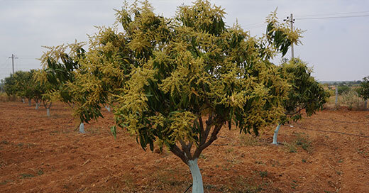 Medium density plantation against conventional low density mango plantation and pruning of plants regularly for good canopy management , harvesting and better yield.