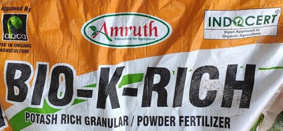 We have stopped using chemical fertilizers and started applying Organic inputs like Organic Potash (PROM- made using Cow dung and rock phospate mineral) and Organic K, made out of Moalasses